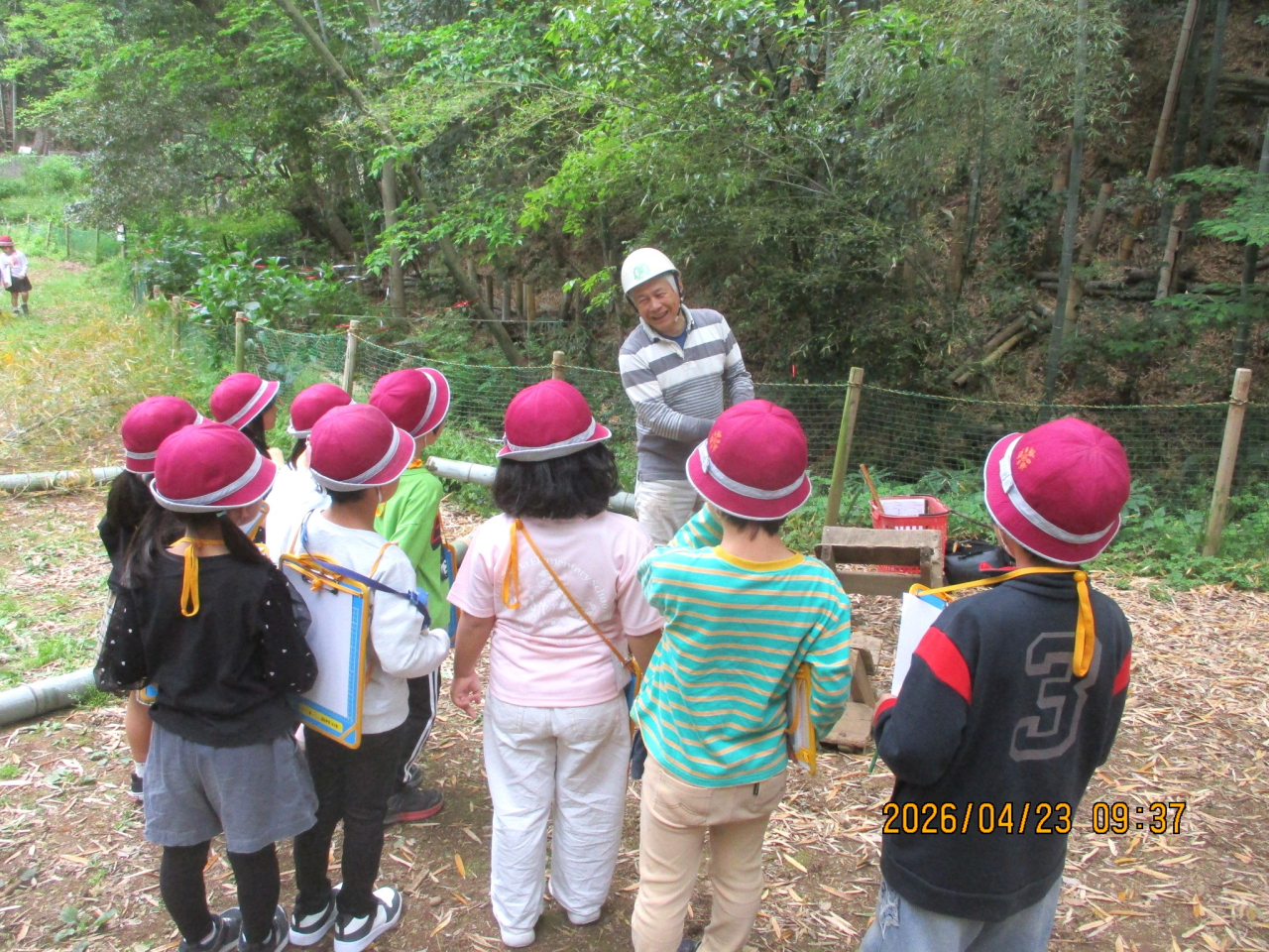 竹切を行ったふれあいの森で橘小学校2年生の生活科の授業が行われていました。生活科とは「身近な人々、社会、自然との直接的な体験を通して、自立と生活の充実の基礎を養う教科」だそうです。引率の先生に伺ったら生徒たちへ「春を描く」というテーマを与えたそうです。タケノコを描いている子、野草を描いている子、みんなとっても元気です。「春を描く」ってシャレてますね。