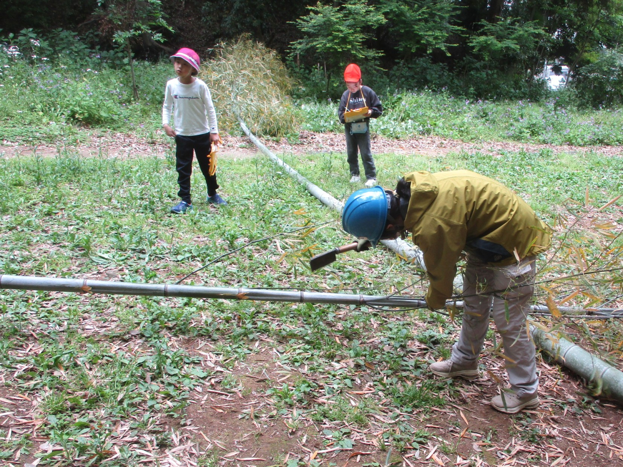 5月の炭焼き用の竹切です。6本切り出しました。5月3日にレンジャーズプロジェクトのボランティアの皆さんを受入れてホタル観賞用のランタンつくりをお願いする予定です。その為の竹も切り出したかったのですが炭焼き用を優先させました。