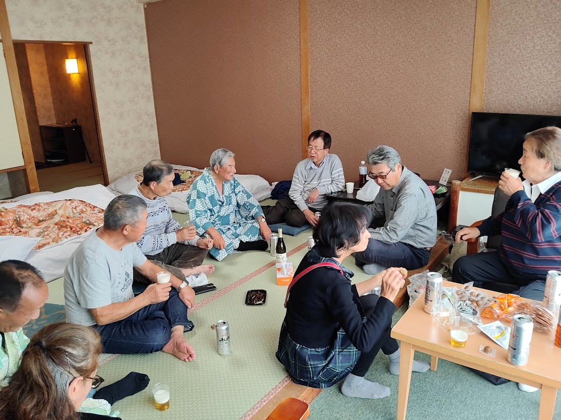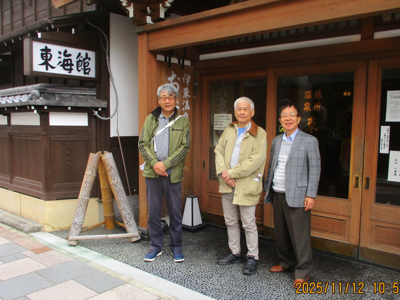 毎年恒例の秋の1泊旅行を実施し、伊東の伊東園ホテル本館に泊まりました。12名参加、今回はホテルが運航するバスを利用しました。横浜YCATを10時に出発、1時30分伊東園ホテル本館着です。到着後は参加者懇親がメイン、夕食前から宴会状態です。夕食後はカラオケ、存分に懇親を深めることが出来ました。
