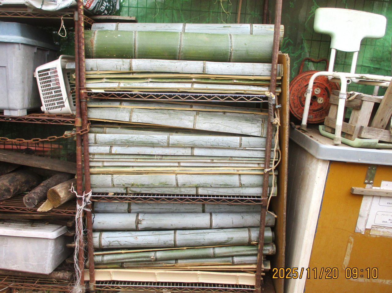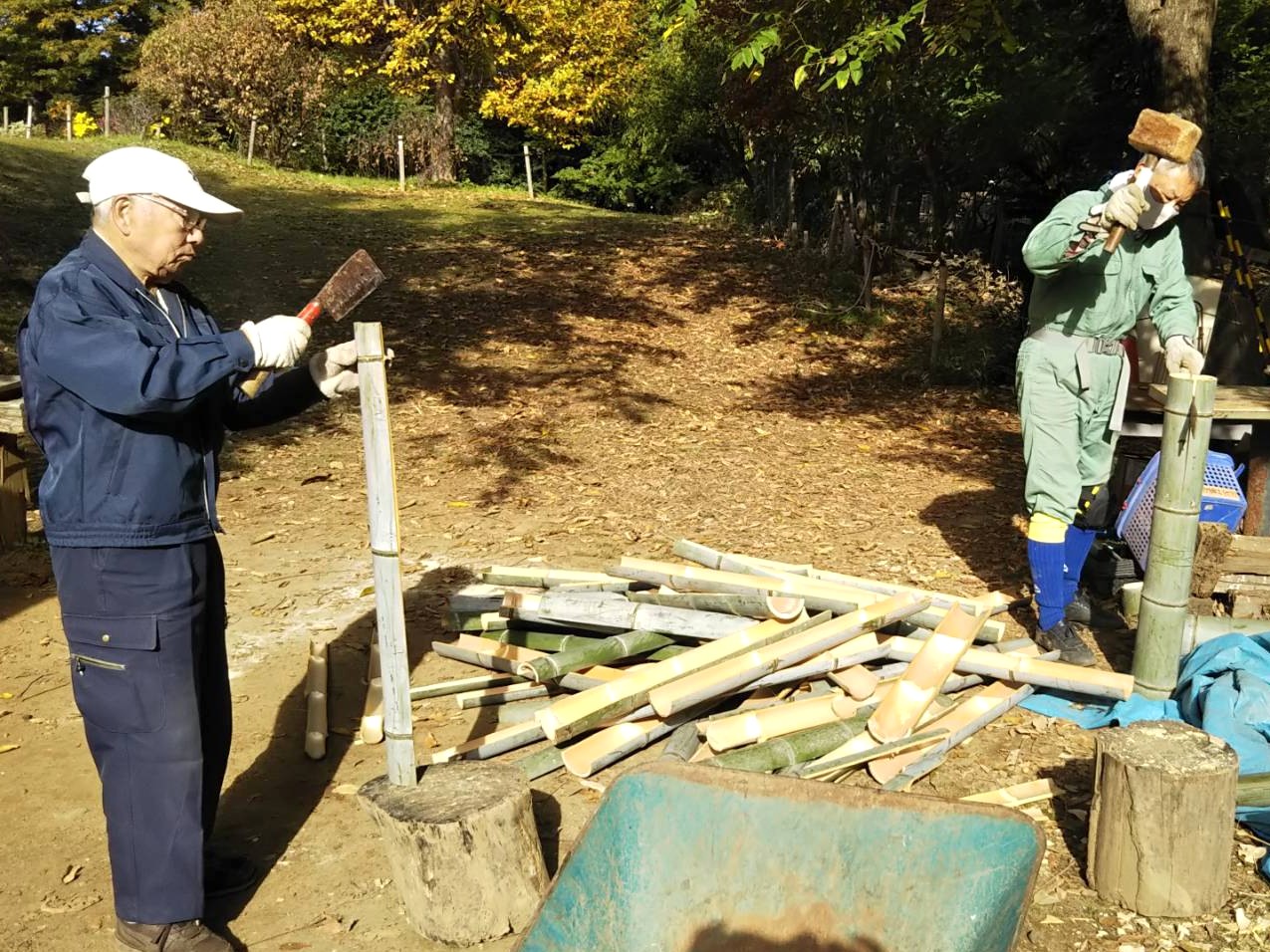 これは16日日曜日の作業です。20日に切り出した竹の節取りです。来週窯詰、再来週炭焼きが予定されています。