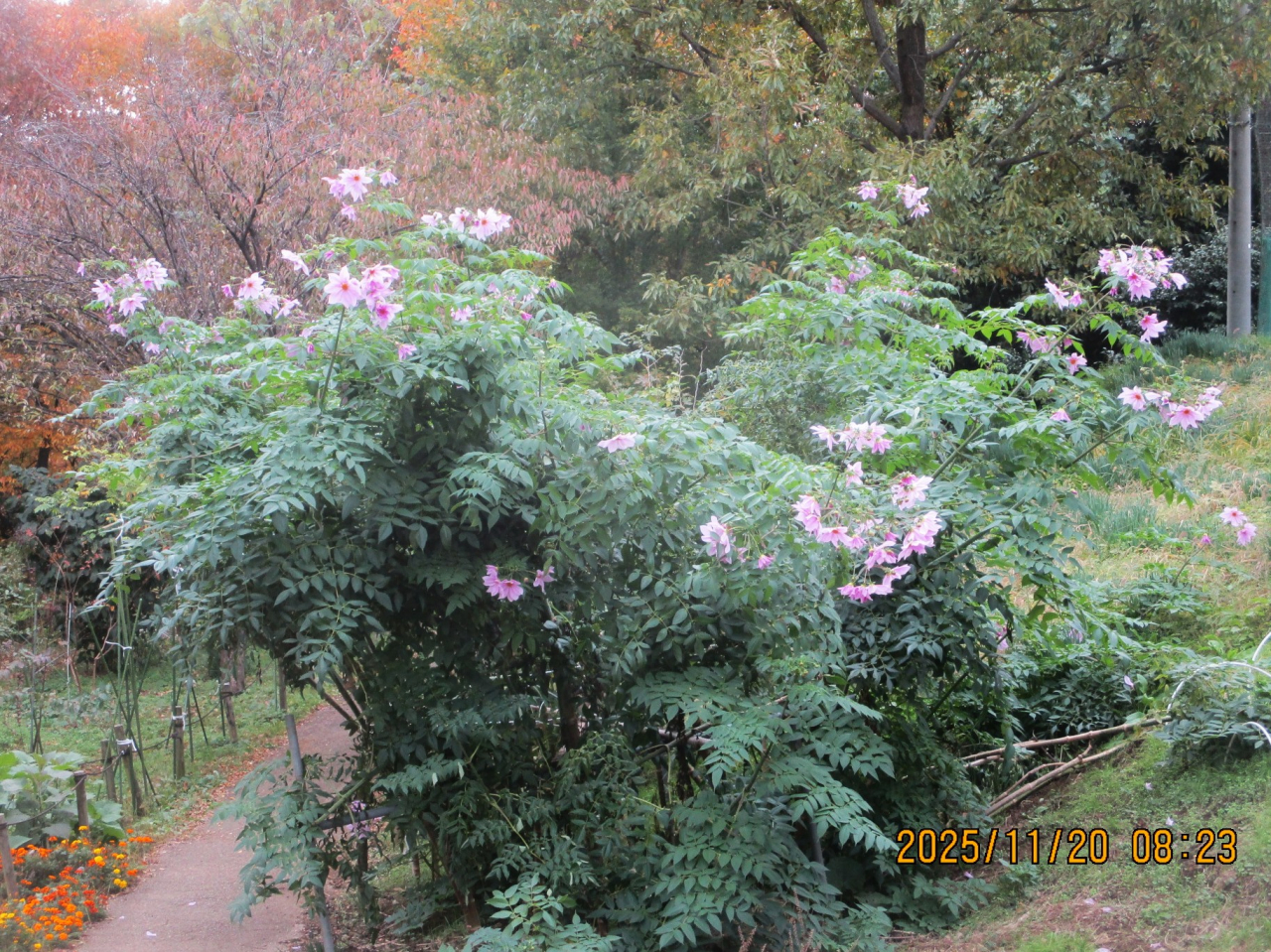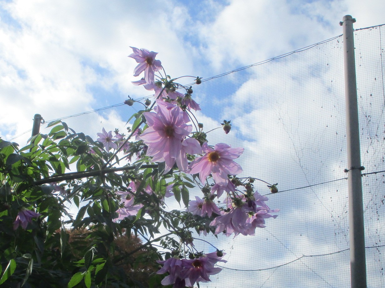 朝は冷え込みましたが晩秋という感じではなく心地いい気候の活動日です。今年も皇帝ダリアが咲きました。今年の花は例年以上に大きいようです。青空が似合う花ですね。