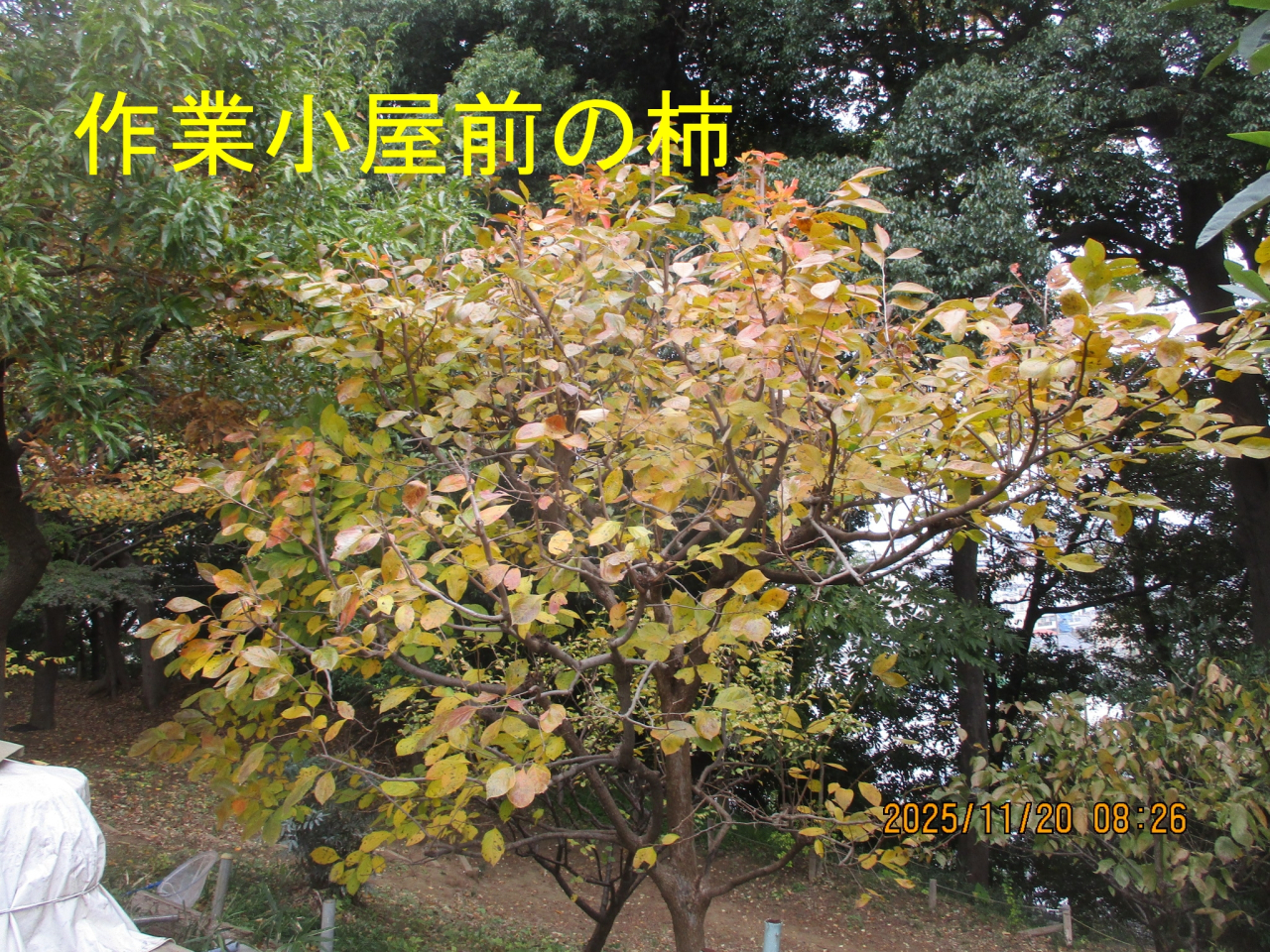 コブシやケヤキなど色づきが深まってきました。柿は木によって色合いが異なります。中々にいい感じに色づいています。