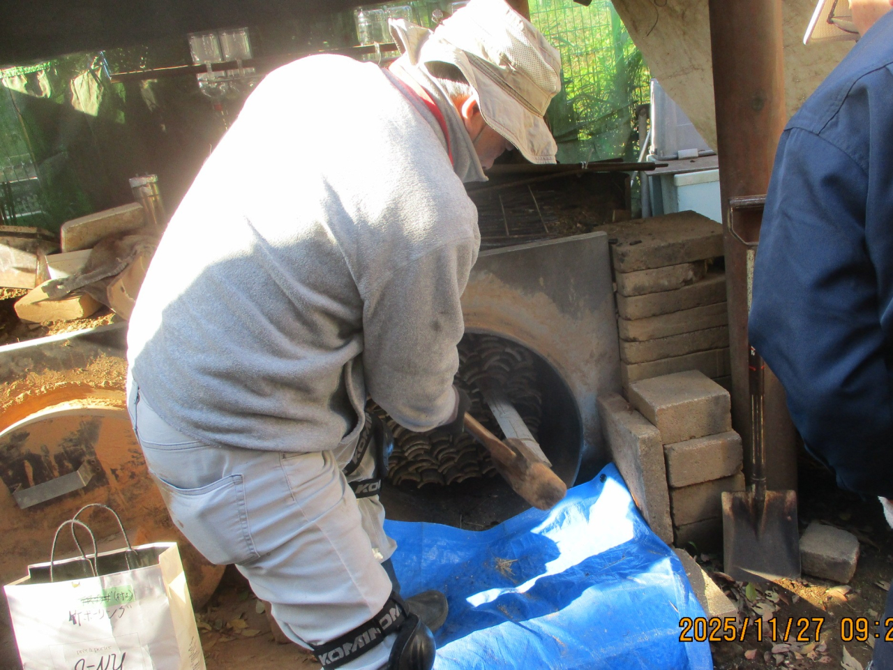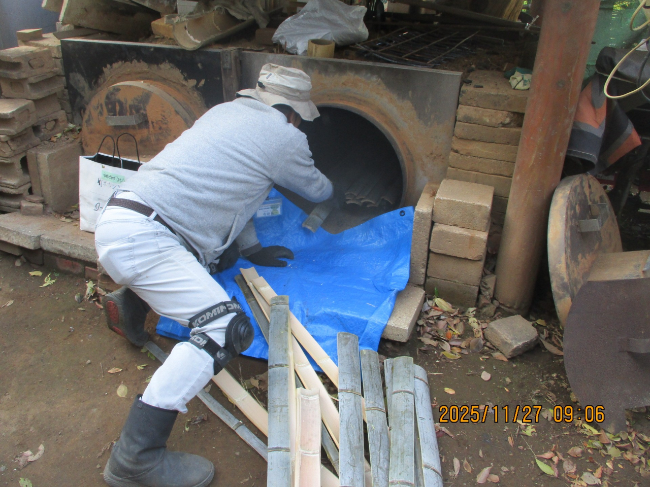 来週の炭焼きに向けて窯詰です。今回、丸竹は入りません。窯の底部に窯出し時に楽になるようスライド式ロストルが作られました。(先週日曜)竹部会では色々と工夫が加わります