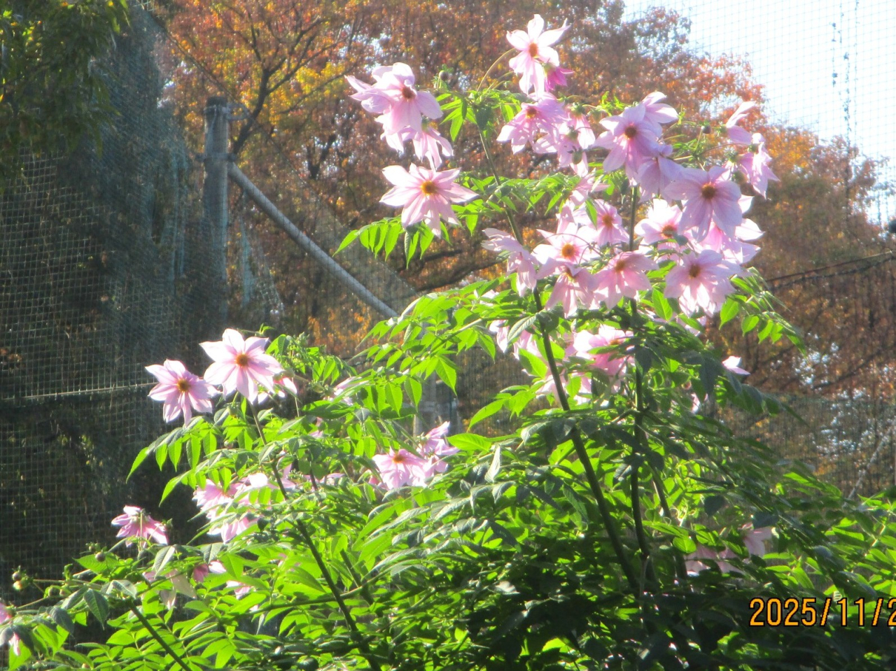 先週、森の2本の柿の木の色づきを紹介しましたが今週はすっかり葉は落ちていました。季節が進んでいます。それでも今年は落ち葉が落ちるタイミングが遅くなっているような気がします。温暖化の影響でしょうか? 今年はまだ落ち葉集め作業はやっていません。皇帝ダリアは今が満開、中々気に入った写真が撮れません。いい写真が撮れた方、送ってください。