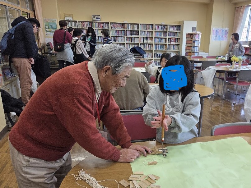 1月17日土曜日に近在の橘小学校で「ふれあい祭り」が開催され、私たちも「むかし遊び」指導を依頼されて会員11名で参加、支援してきました。「ふれあい祭り」は橘小学校PTA主催です。私たちは数年前から毎回参加していますが、主催のPTAの皆さんは大変だろうと思います。私たちへも開催の半年前程から打診があります。準備から当日の運営など大勢の保護者と思われる方々が活躍されています