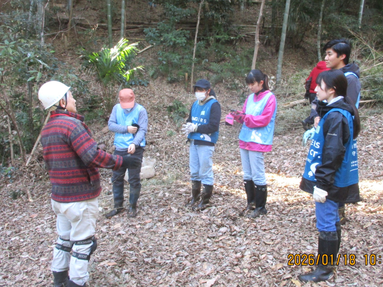 NPO法人自然環境復元協会が緑の活動ボランティア団体へボランティアを派遣する「レンジャーズプロジェクト」、今年も1月18日にふれあいの森で受入れました。男性3名女性4名のボランティアが来てくれて「ふれあいの森」でホタルの沢の泥上げと竹切を手伝って頂けました。