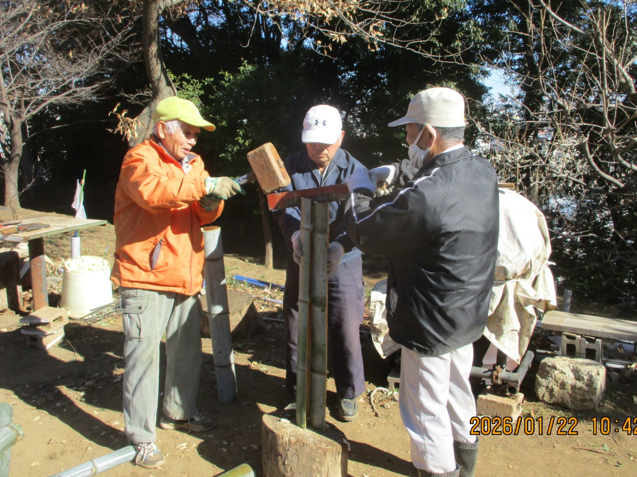 先週炭焼き教室で竹切を行いましたが軽トラが使えずふれあいの森に竹を残していました。本日は無事に軽トラが回復し借りれたので竹を運び、竹割から節取りを行いました。来週窯詰を行い、2月5日の炭焼き教室で炭焼きの予定です。