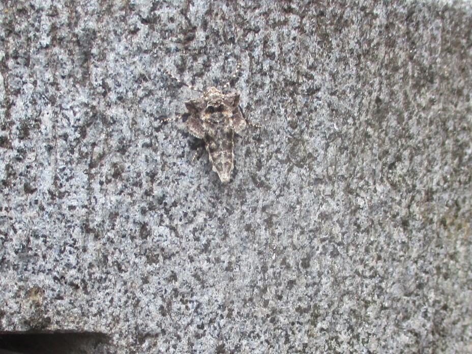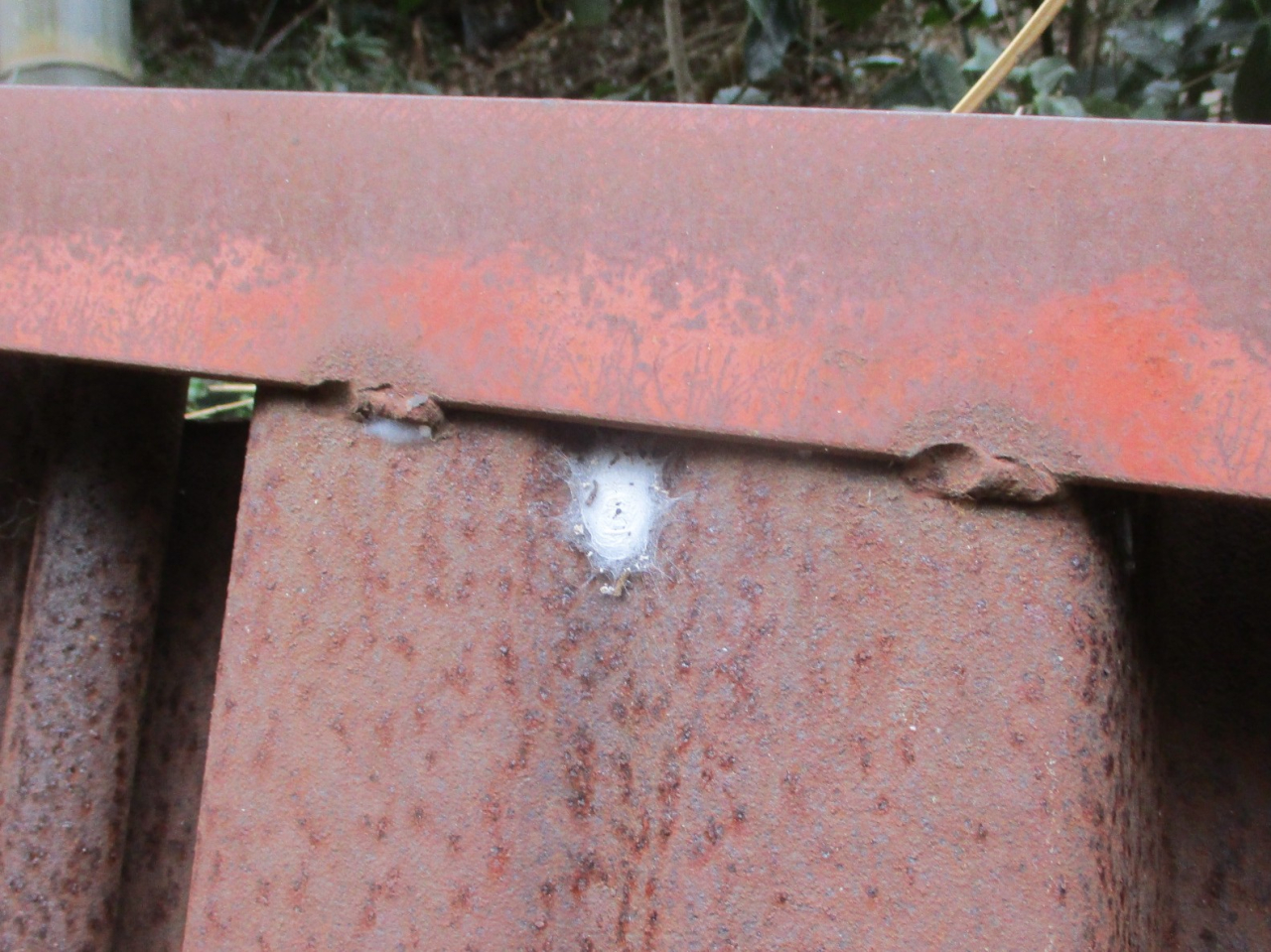 冬にしか活動しない珍しい蛾を佐々木さんが見つけてくれました。小さな蛾なので中々見つけられないでしょう。人工物の鉄板にはクモが卵を産み付けています。これも知らなければ見落とします。