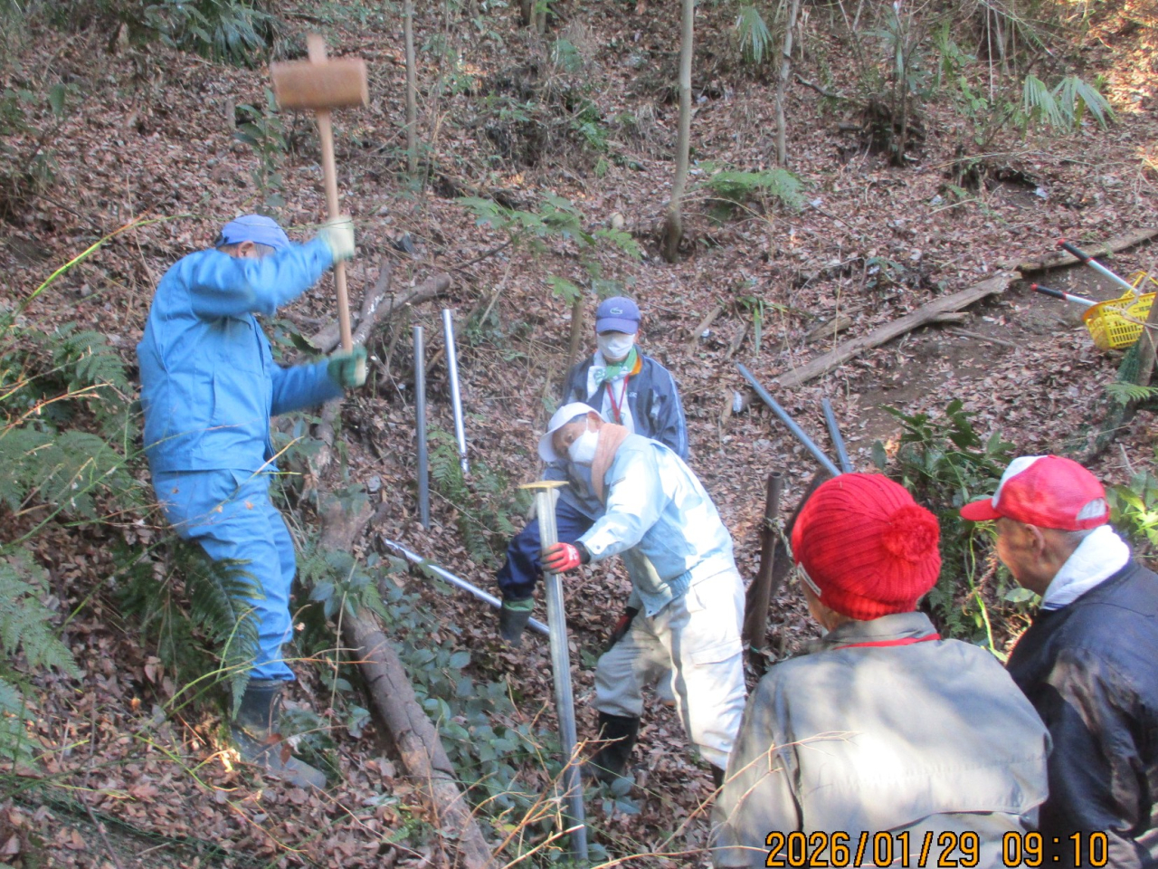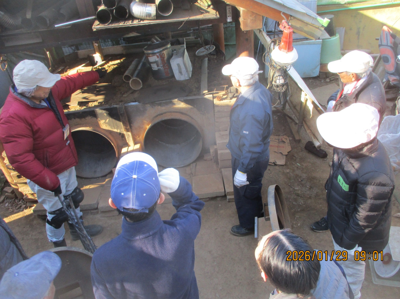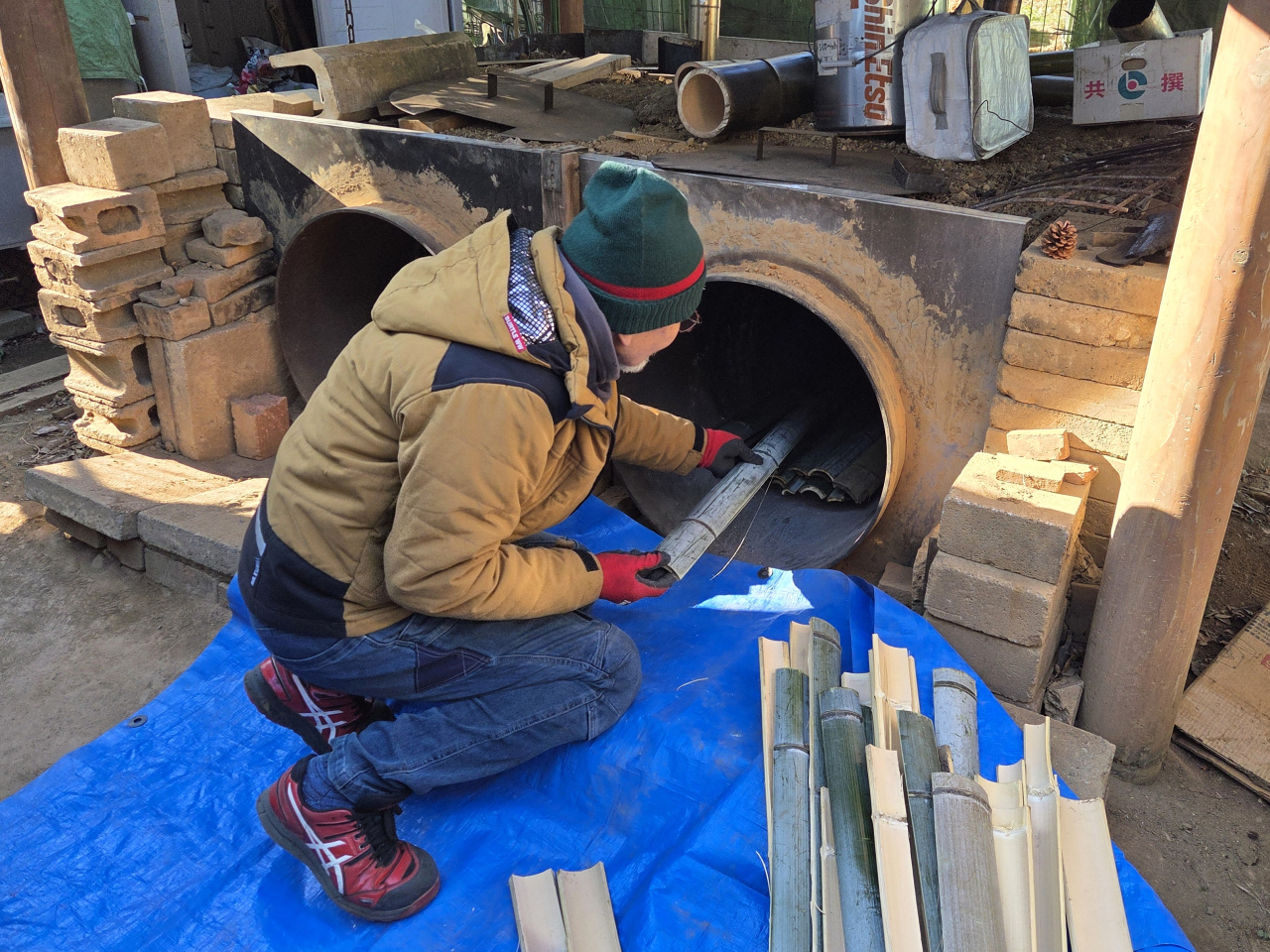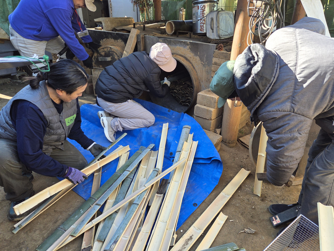 2週間前に開講した今年の炭焼き教室、1日目は竹切でしたが本日は切った竹を窯に詰める「窯詰」でした。教室参加者へは「自由参加」と伝えていましたが、7名の受講生中5名が参加してくれました。熱心に参加してもらえるとこちらも熱が入ります。説明しながらの窯詰なのでいつもより時間はかかりましたが窯一杯に詰められました。今回は竹材96.3キロに加えて梅枝3本2キロが入りました。来週は炭焼きです。