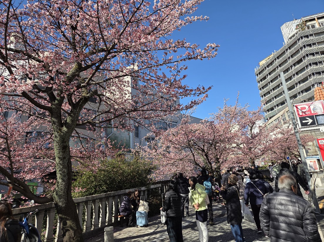 昨日2月4日は立春、「寒さも峠を越え、春の気配が感じられる」という日でした。本日はまさにその通り、春が近いことが感じられる活動日です。写真は熱海市糸川遊歩道の熱海桜です。超早咲きの熱海桜、1月10日から2月8日まで「熱海桜まつり」が開催中です。梅園の梅祭りは3月8日まで、2月1日に行ってきました。
