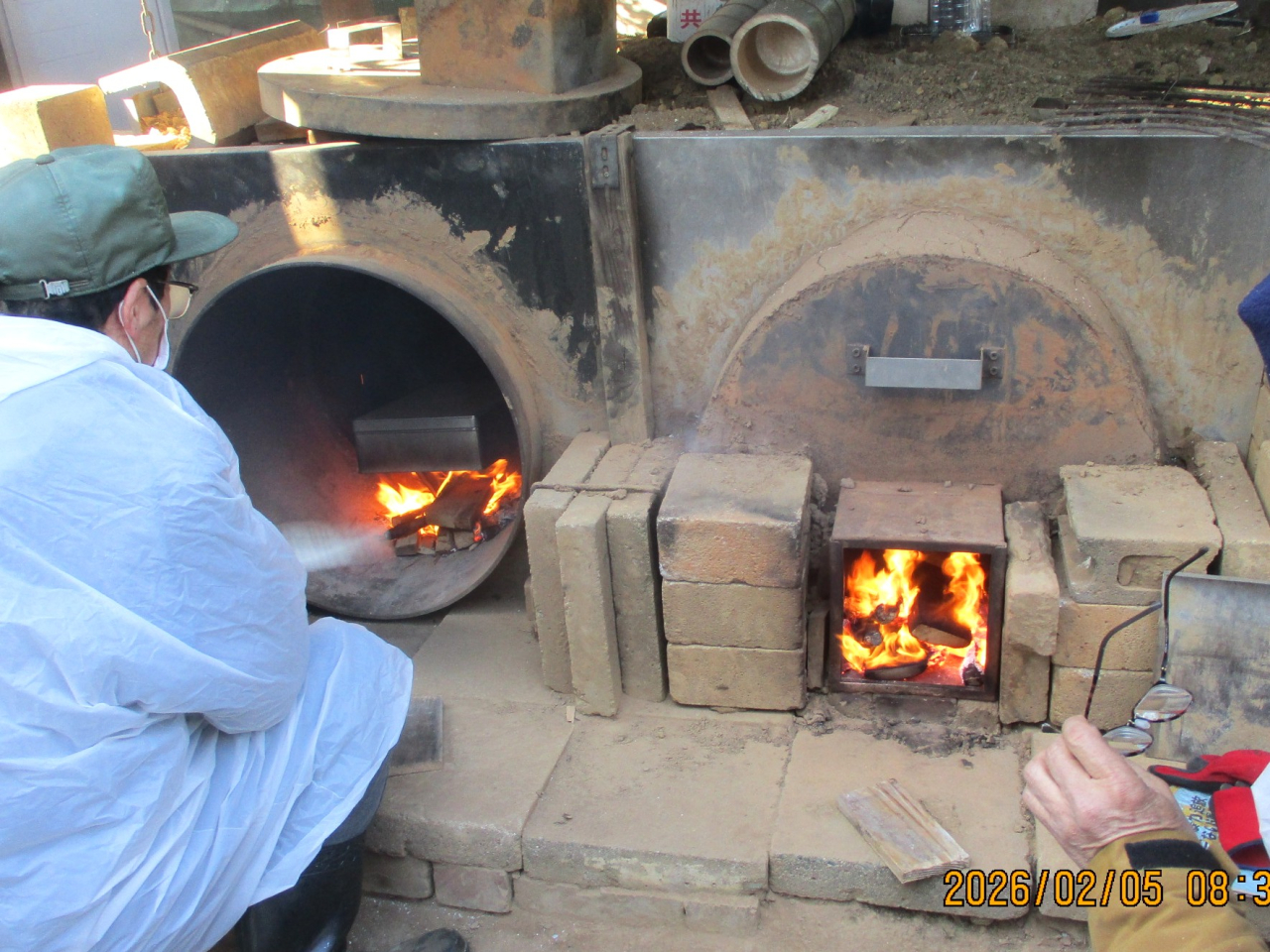 1号窯と2号窯、同時に火を焚くのは久しぶり