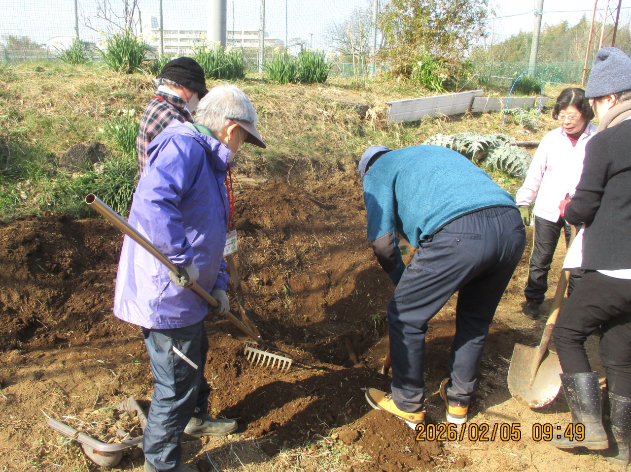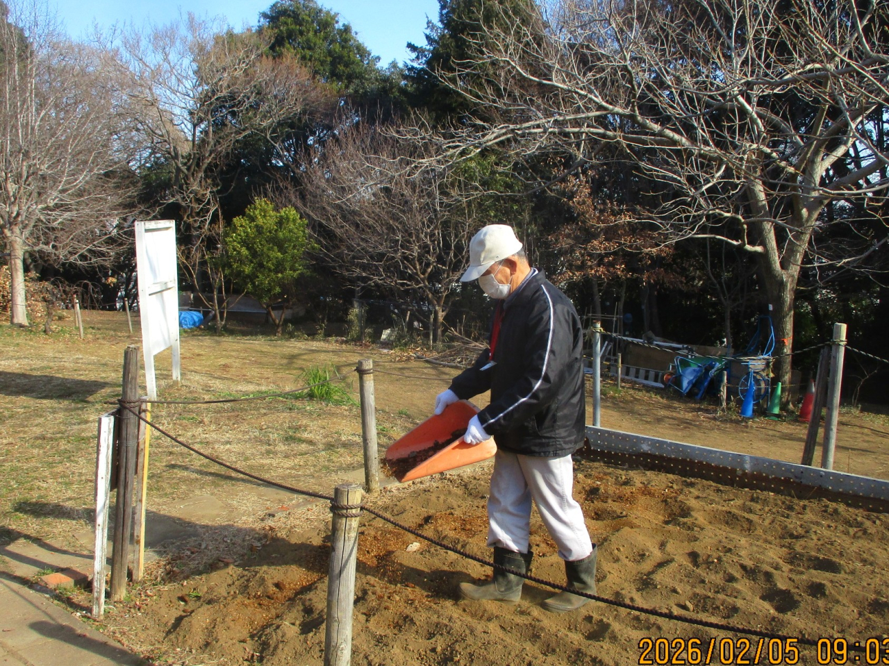 有機肥料の馬糞を入れて耕しです。グラウンド下の新しい畑はスコップで耕したら大きな鉄パイプが埋まっていました。苦労して何とか掘り出し、畑として整備出来ました。