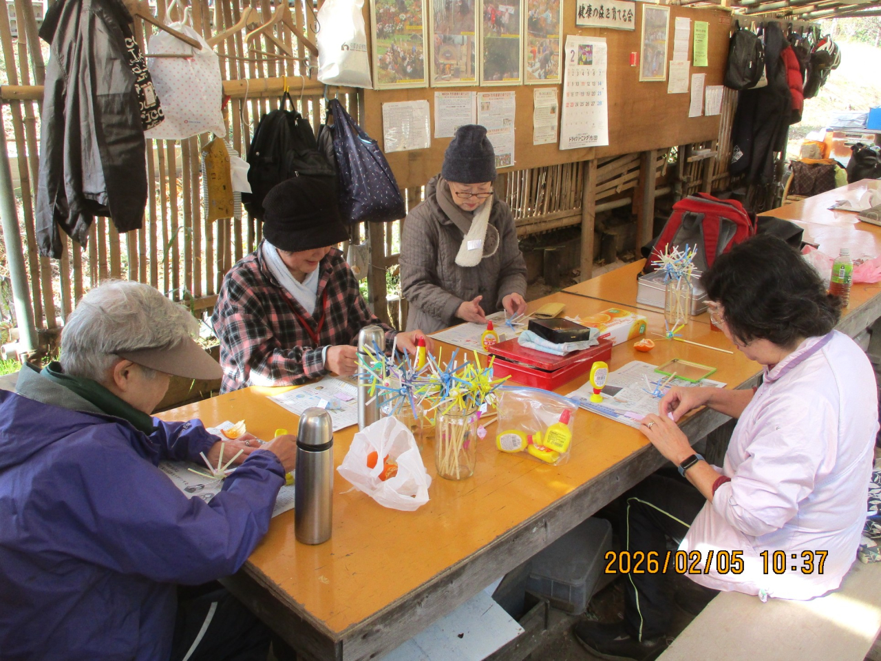 園農部会女性会員の風車つくりです。千年の保育園訪問時に持参するようです。