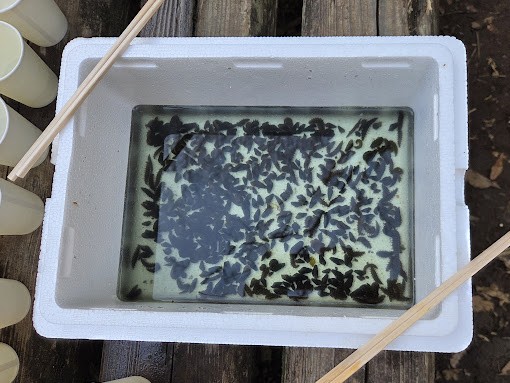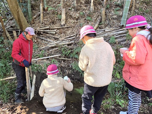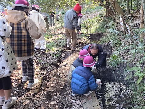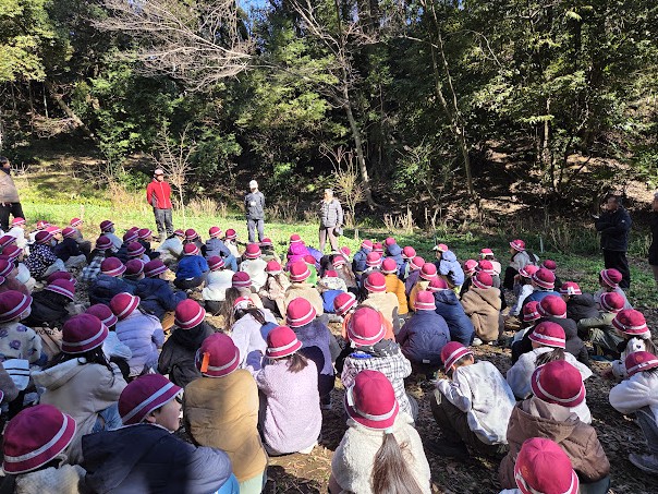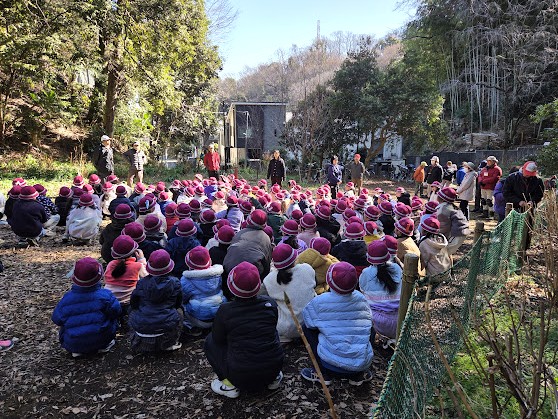 2月の恒例イベントとなっている「ホタル幼虫放流」です。今年は400頭の幼虫を昨年と同じ奈良県の業者から購入しました。橘小学校2年生の約150人の児童たちがふれあいの森までやってきて一人1頭ずつ、紙コップに入れた幼虫を放流してくれました。会員20人が集合して子供たちの放流を支援しました。
