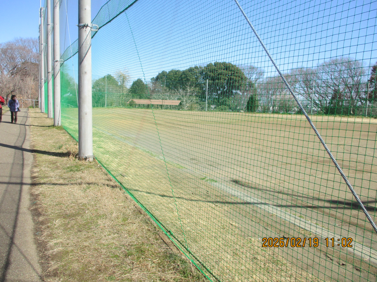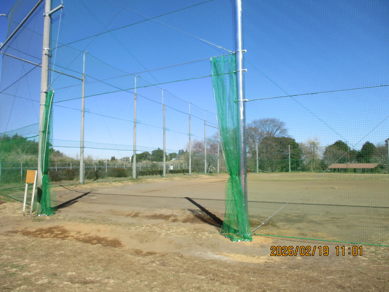 バスケットゴールポストの本設置を切っ掛けに始まったグラウンド周りのネット補修が終わったようです。支柱を1本追加してカーテン状の入口ネットが張られ、グラウンド周りのネットは下側が全て新しく張り替えられました。3月10日頃から入口からトイレまでの歩道の舗装工事が始まります。10日から2週間ほどは車は作業広場までは入れません