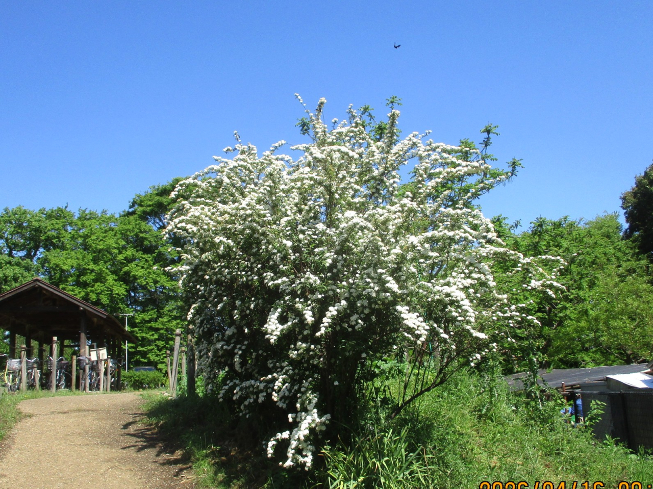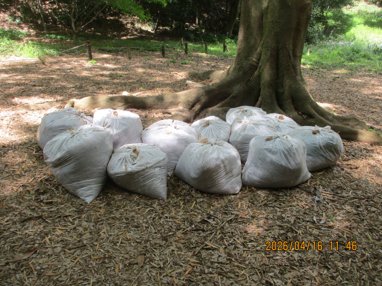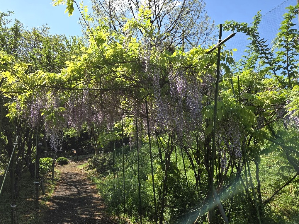 昨日の雨は未明には止み、気持ちのいい春たけなわの活動日です。園内ではフジが咲き、コデマリも満開。令和2年に「かながわ地球環境賞」受賞記念として植えたシャクナゲも、今年も花をつけ始めています。
