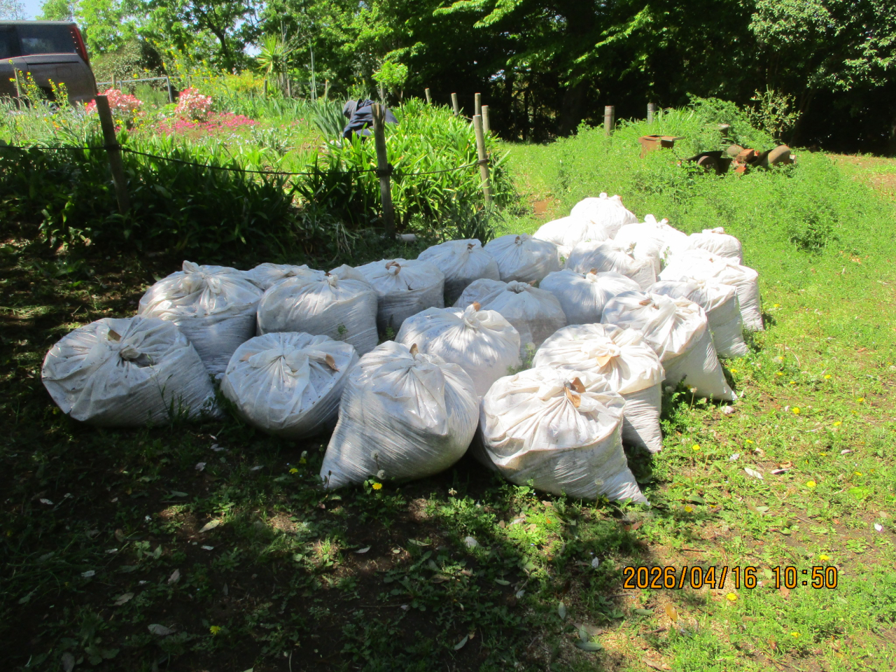先週借用した粉砕機を使い、12日(日)にはふれあいの森で不要竹を粉砕しました。 春日台では木材を粉砕して木材チップ24袋、ふれあいの森では竹材を粉砕して竹チップ12袋が出来上がりました。資源として今後、活用します。