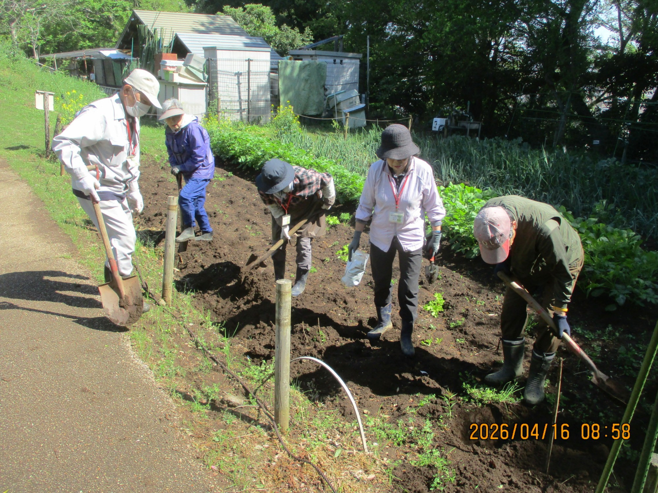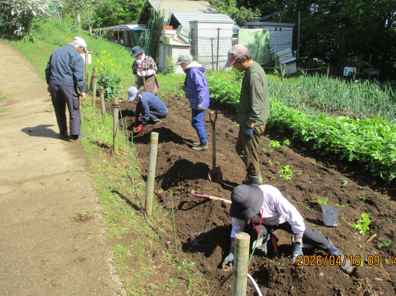 園農部会では、保存していたヤーコンの種芋を掘り出し、畑へ植え付けました。
